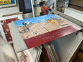 Supplemental Condition Information: Multiple dents and paper breaks in lower red section, one small area of paper loss in red section, very light denting in the image in several areas. light edge damage.