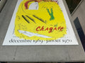 Additional Details: This exhibition poster for Marc Chagall’s solo show at Galerie Maeght, Paris (December 1969 – January 1970), was published by Maeght in 1969 and is listed as reference number 56 in Chagall's Posters – A Catalogue Raisonné by Sorlier (1975). The poster showcases Chagall’s vibrant and imaginative artistry, highlighting his signature blend of dreamlike imagery and vivid colors. Set against a bright yellow background, Chagall portrays himself in two distinct forms: his head to the left and his lower body performing a handstand to the right. The image is plate-signed in red ink, making this poster a prized collectible that commemorates a key event in Chagall’s career and the rich cultural legacy of Galerie Maeght.
