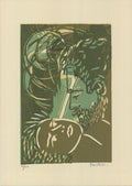 Additional Details: This limited edition print, titled Passion, was created in 1970. The artwork is signed and numbered out of 100, highlighting its exclusivity and collectible value. The composition features a woman submitting to a bearded man, with an abstract background rendered in green and brown tones. The background's abstract nature adds a layer of complexity and intrigue, leaving the viewer to interpret the artist's intent. The artist explores themes of human emotion and relationships. In Passion, the artist uses bold colors and abstract forms to convey the intensity and complexity of the depicted scene. The green and brown hues create a contrasting yet harmonious palette, enhancing the emotional impact of the artwork.