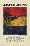 Additional Details: Original exhibition poster created for Jasper Johns’s show at Galería Ponce, Mexico, August–September [year]. The poster features Painting with Two Balls, one of Johns’s most iconic and provocative works. First created in 1960, Painting with Two Balls challenged conventions of Abstract Expressionism by literally inserting two wooden balls into the canvas, breaking the surface and questioning the very definition of painting. This exhibition poster captures that landmark image, presenting Johns’s wit and conceptual rigor in a collectible format. As with much of Johns’s work, it blurs the line between object and representation, making it a fascinating subject for an exhibition abroad at the height of his international acclaim.