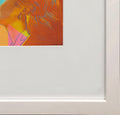 Additional Details: Studio portrait from the 1940s of Ingrid Bergman, reimagined through Andy Warhol’s signature Pop Art lens and published by Galerie Börjeson in 1983. This vivid variant features bold blocks of turquoise, orange, and rose, bringing a cinematic radiance to Bergman’s profile. Printed on heavy glossy stock with Warhol’s original printed signature, this edition is part of the rare series produced during Warhol’s lifetime in direct collaboration with Börjeson — a historic moment when Pop Art was first introduced to Scandinavia. Presented in a white wood frame with a 1-inch front profile and 3/4-inch side profile, the artwork is mounted behind a 4-inch soft white mat, offering a crisp, gallery-quality presentation that elevates the iconic Warhol–Bergman image.