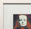 Additional Details: Ingrid Bergman as The Nun, 1983, published by Galerie Börjeson, captures Bergman’s grace and spiritual poise from The Bells of St. Mary’s in Warhol’s iconic Pop style. Rendered in violet, maroon, and pale turquoise, the portrait conveys both devotion and intensity, transforming a cinematic role into a modern icon. Bearing Warhol’s printed signature, this edition reflects his fascination with the sacred image of celebrity. Framed in white wood with a 4-inch mat and UV-plexi, the presentation enhances its dramatic composition and reflective calm.