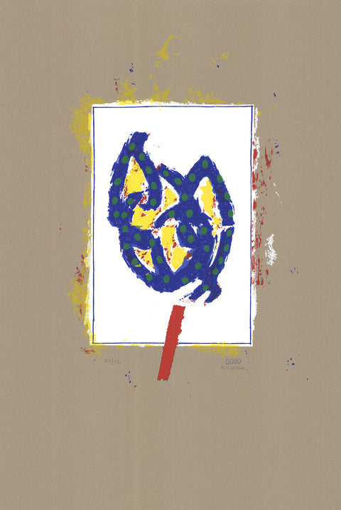 Additional Details: This original lithograph, titled Out of Doors, was created by renowned artist Glen Goldberg for the Lincoln Center for the Performing Arts' "Out of Doors" series, published in 1990. Goldberg, celebrated for his intricate and detailed work, has signed and numbered each print, adding a layer of exclusivity and authenticity to this limited edition piece. Out of Doors encapsulates Goldberg's unique artistic vision, characterized by his use of detailed patterns and symbolic imagery. The lithograph features a complex interplay of forms and textures, creating a visually rich composition that draws viewers into its intricate details. Goldberg's meticulous approach and thoughtful arrangement of elements reflect his deep engagement with the natural world and abstract patterns.