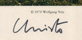 Additional Details: Striking original exhibition poster documenting Christo’s monumental environmental installation Wrapped Walk Ways, realized in Kansas City’s Loose Park in 1977–78. For this project, Christo and Jeanne-Claude wrapped 2.7 miles of park walkways in a shimmering golden nylon fabric, transforming a familiar public landscape into a sweeping ribbon of color and light. The photograph captures the undulating path at its most lyrical—an elegant, sunlit curve weaving across the green park grounds. Printed in the pre-digital poster era, the piece exhibits the rich tonal depth and photographic fidelity characteristic of high-quality offset lithography of the period. This particular example is hand-signed by Christo in bold black marker in the lower right corner, adding exceptional desirability for collectors of environmental art and project documentation.