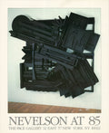 Additional Details: Original exhibition poster created for Nevelson at 85, celebrating Louise Nevelson’s landmark 1985 show at The Pace Gallery in New York. Featuring one of her iconic monochromatic wall assemblages, the poster highlights Nevelson’s signature sculptural language—densely layered wood constructions unified in dramatic black. A striking tribute to one of the most influential sculptors of the 20th century, this vintage gallery poster is a powerful visual statement and a collectible piece of American modernist history.