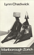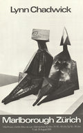 Additional Details: Original black-and-white exhibition poster created for Lynn Chadwick’s show at Marlborough Gallery in Zurich. The image depicts a pair of shoes with their respective shoe trees, customized by the artist, underscoring Chadwick’s inventive approach to form and material. This playful yet sculptural composition reflects the same angular, expressive qualities that define his celebrated work. Printed in 1974, the poster is both a striking piece of exhibition ephemera and a collectible example of mid-20th-century graphic design tied to one of Britain’s most important modern sculptors.