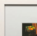 Additional Details: This image, Urn with Fruit, is drawn from a 1994 box set of Robert Mapplethorpe photographs, published by teNeues Publishing Company and printed in Germany. Classical in style and composition, the still life evokes timeless elegance through the careful balance of form, texture, and shadow. Mapplethorpe’s refined aesthetic elevates this simple arrangement into a visually arresting study of symmetry and tonal depth. Presented in a white wood frame with a front profile of 1 inch and a side profile of 3/4 inch, and mounted behind a 4-inch mat, this piece becomes a sophisticated focal point suitable for both traditional and modern interiors.