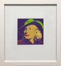 Additional Details: Ingrid Bergman from “Casablanca” (1983) showcases Andy Warhol’s masterful reinterpretation of the Hollywood icon, published by Galerie Börjeson in Malmö, Sweden. Bathed in deep violet and emerald green tones, Bergman’s expression is both distant and magnetic—a portrait that balances cinematic beauty with Warhol’s Pop sensibility. Each print in this rare series bears Warhol’s printed signature, enhancing its collectible significance. Printed on glossy paper reminiscent of his silkscreen works, this piece captures the reflective glamour and allure that defined Warhol’s late period. Presented in a white wood frame with a 4-inch mat and UV-protective plexiglass, this edition radiates timeless sophistication—a powerful intersection of art, film, and cultural history.