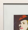 Additional Details: Ingrid Bergman from “Casablanca” (1983) by Andy Warhol, published by Galerie Börjeson in Malmö, Sweden, presents Bergman in warm, golden tones under a bold red hat—her elegance distilled into pure Pop expression. Warhol captures her cinematic aura with both reverence and contemporary flair. Printed on glossy paper and bearing Warhol’s printed signature, this authorized edition exemplifies his fascination with beauty and fame. Framed in white wood with a 4-inch mat and UV-plexi, the work evokes the golden age of film through Warhol’s unmistakable modern lens.