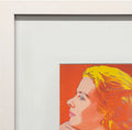Additional Details: Ingrid Bergman (Profile), 1983, published by Galerie Börjeson, captures the legendary actress in warm tones of gold and orange. Warhol’s composition, both simple and striking, transforms a 1940s studio portrait into an icon of modern Pop Art. Bearing Warhol’s printed signature, this rare edition evokes the glow of classic Hollywood and the artist’s fascination with fame and beauty. Framed in white wood with a 4-inch mat and UV-plexi, the presentation enhances its radiant palette and timeless elegance.