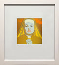 Additional Details: Portrait of Ingrid Bergman as a nun from "The Bells of St. Mary," rendered in Warhol's signature style published by Galerie Borjeson. Known for his bold, repetitive portrait style, Warhol transformed Bergman’s screen presence into pop culture art through works that reflect both admiration and commentary. Presented in a white wood frame with a 1-inch front profile and a 3/4-inch side profile, the artwork is mounted behind a 4-inch mat, creating a refined, gallery-style display that highlights Warhol’s iconic imagery.