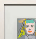 Additional Details: Ingrid Bergman as The Nun, 1983, published by Galerie Börjeson, reveals Warhol’s serene and contemplative side through a refined mix of gray, mint green, and ochre. This version transforms Bergman’s image from The Bells of St. Mary’s into a study of calm devotion and cinematic grace. Bearing Warhol’s printed signature, this edition is part of the Ingrid Bergman portfolio exploring the intersection of faith and fame. Framed in white wood with a 4-inch mat and UV-plexi, the work’s soft palette and minimalist clarity highlight Warhol’s late-period elegance.