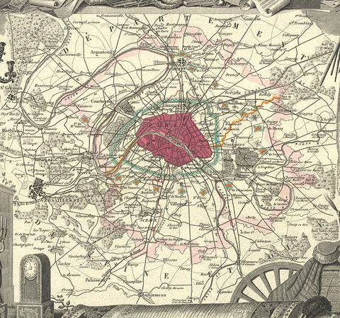 Additional Details: This vintage lithograph from the National Illustrated Atlas of the 86 Departments and Possessions of France, published in 1846, provides a detailed geographical and administrative overview of the Seine department, including Paris. Ideal for adding a touch of historical elegance to living rooms, libraries, or offices, the map offers a fascinating glimpse into the geopolitical landscape and administrative structure of 19th-century France.